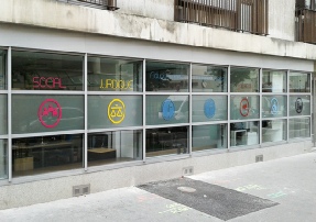 Stickers, lettres autocollantes sur vitrine à Paris 13ème.